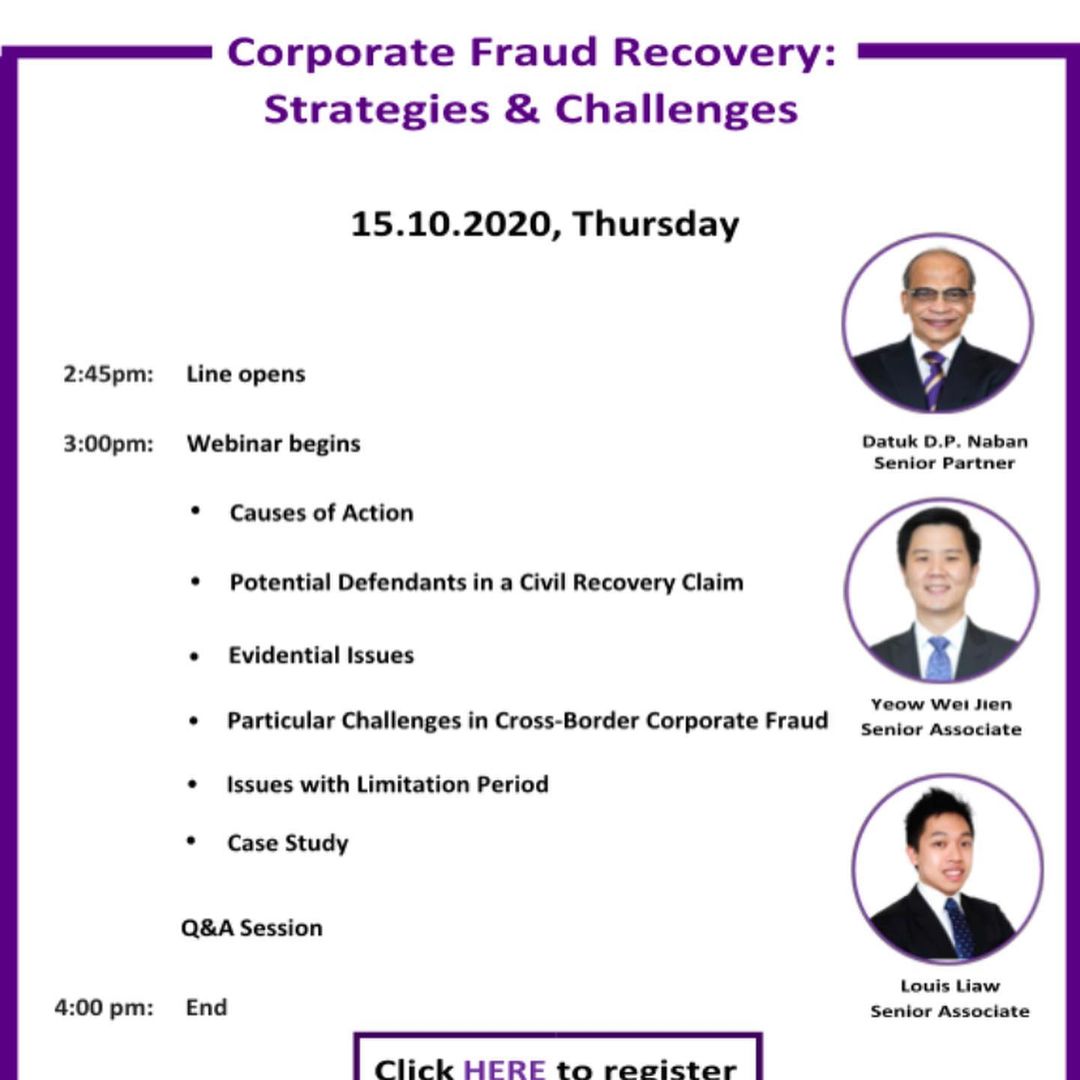 Speaker, Corporate Fraud Recovery – Strategies and Challenges webinar, 2020