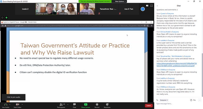 Speaker, National Digital ID systems in Asia – Mapping Considerations of Potential Benefits and Harms @ RightsCon, 2020