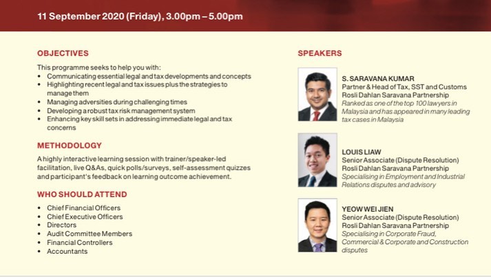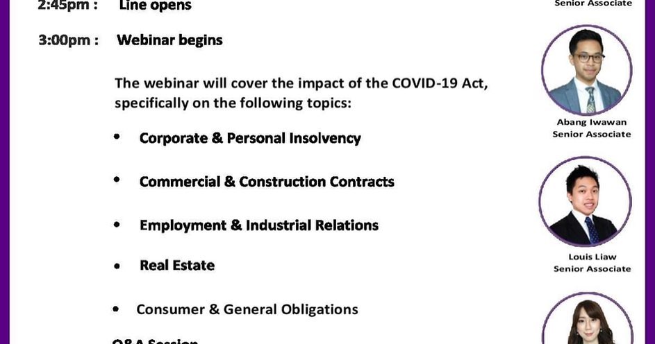 Speaker, Post MCO Debt & Business Restructuring – Key Legal, Employment and Tax Considerations webinar, 2020